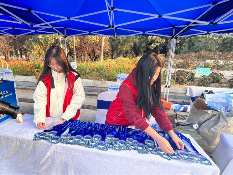 早上六点,50名志愿者们着装整齐,准时到达各个点位展开服务,尽职尽责 。在签到检录、秩序维护、赛道指引、衣物存取、补给发放等环节处处可看到志愿者忙碌的身影。