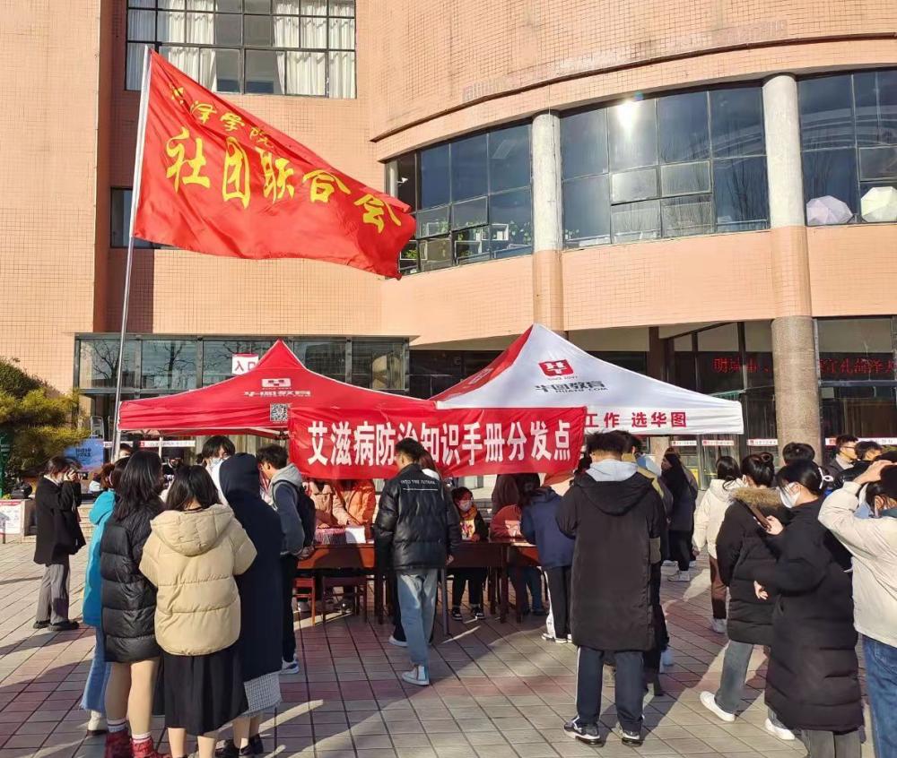 随后,出席仪式的全体领导、老师和同学共同参与了主题签名活动。活动现场还向同学们发放宣传折页、知识手册、红丝带、防艾小礼包等。
