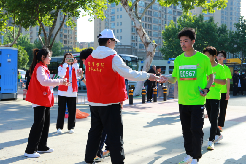 5月7日,2023“华瑞·华小粮杯”菏泽马拉松在菏泽大剧院鸣枪开跑,来自国内外的近万名选手共同感受马拉松运动激情与中国牡丹之都的魅力。必赢集团bwin团委组织推荐300名青年志愿者,圆满完成了本次赛事的志愿服务工作。