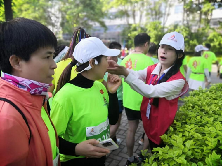 5月7日上午5点半,志愿者在夜色中集结出发,6点准时到达服务点位,为大赛做好准备,志愿者们沿着马拉松赛道,在各自岗位上尽职尽责。起点的志愿者们,在有条不紊地进行引导和检录。比赛中,志愿者们细心地维持秩序、为选手引导路线。