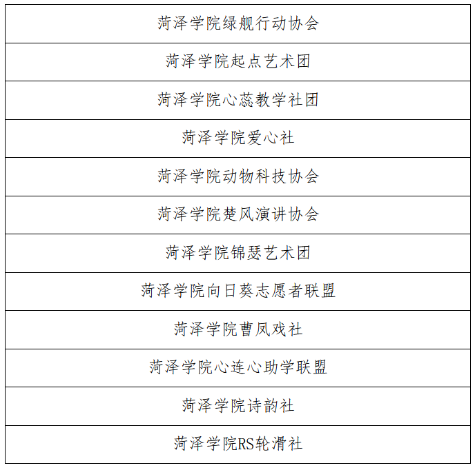 祝贺以上文明社团!希望各学生社团能够进一步总结经验,为推动学校学生社团活动多元化与丰富菏院文化建设做出新的更大贡献。