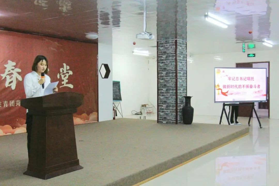 接着,王盛楠老师为青年上党课,带领同学们回顾了党的十八大以来习近平总书记每年五四节前后对青年的寄语,一同回忆习近平总书记去多所大学调研、与大学生亲切交流的故事。习近平总书记对于青年发展寄予厚望、关心关怀青年学生成长成才,在习近平总书记的寄语中,我们更加坚定地明白自己要成为一个什么样的青年。