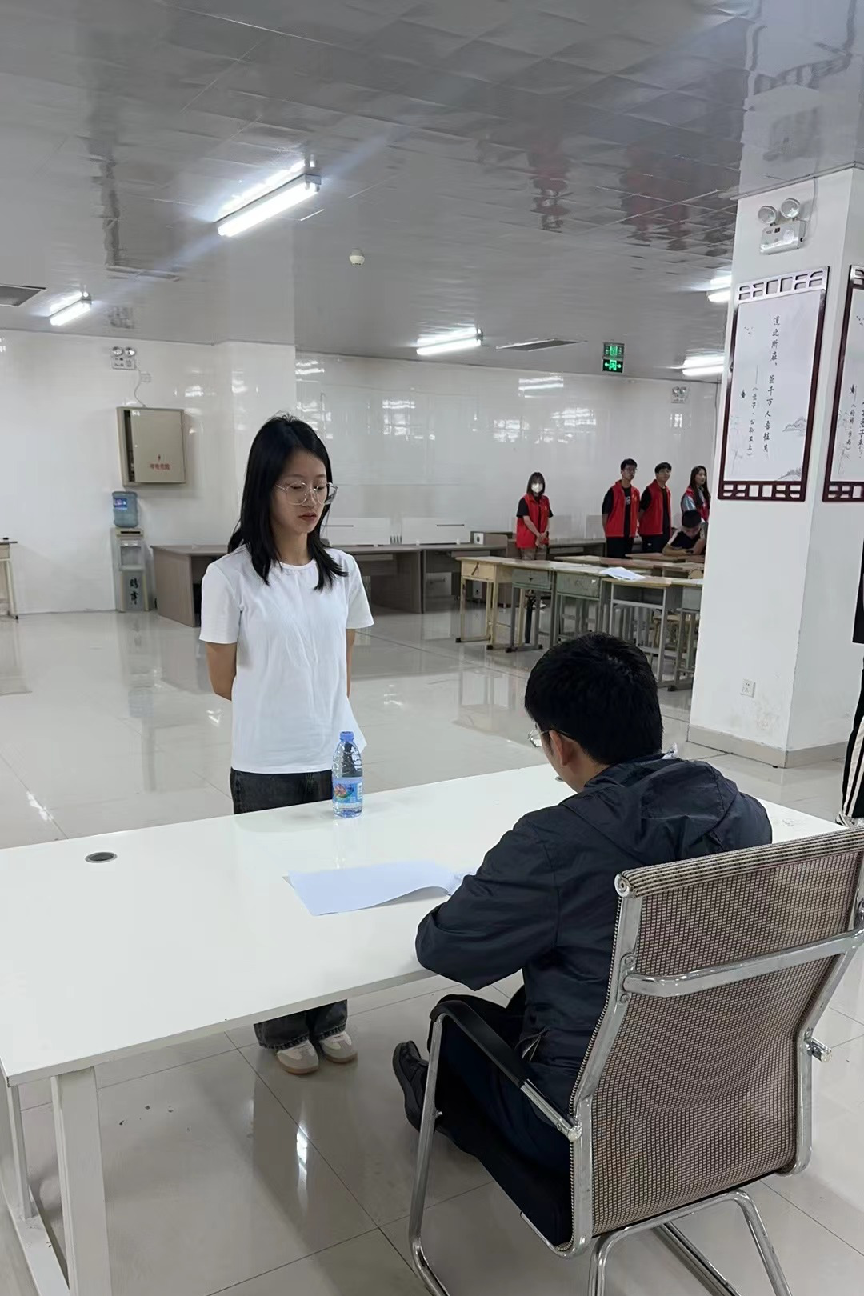 本次面试分为自我介绍和考核问答两个环节,同学们结合自身志愿服务情况、社会实践经历和个人专业优势,畅谈了参加西部计划的缘由和未来工作规划。校团委三位老师担任本次面试的评委,全方位考查了志愿者的仪态仪表、语言表达、逻辑思维、应急应变及服务意向等方面,并鼓励志愿者们要始终保持积极向上的精神状态,不断学习奋进。最终,学校会将理想信念坚定、道德品质良好、综合素质较强的优秀青年选派到祖国西部的建设和发展中。