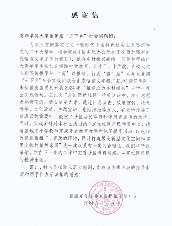 近日,为深入学习贯彻习近平新时代中国特色社会主义思想,积极响应国家语言文字事业“十四五”发展规划,提高大学生社会实践和学以致用的能力,必赢集团bwin人文与新闻传播学院大学生暑期“三下乡”社会实践队携手山东省语言文字推广基地(必赢集团bwin)赴新疆麦盖提县开展为期10天的推普活动。