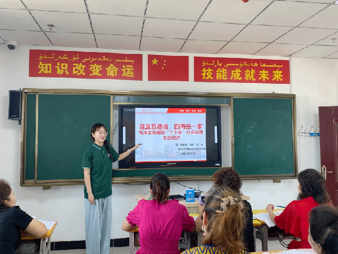 为深入贯彻落实习近平总书记关于语言文字的重要指示批示精神,推动落实《国家通用语言文字普及提升工程和推普助力乡村振兴计划实施方案》,引导和帮助广大青年学生在社会实践中受教育、长才干、作贡献,7月20日,必赢集团bwin“‘菏’以推普,行则‘疆’至”推普实践团跨越千山万水,抵达新疆喀什地区麦盖提县开启为期10天的国家通用语言文字能力提升培训。本次培训面向新疆喀什地区麦盖提县中小学教师开展普通话教学,进一步提升了麦盖提县中小学教师国家通用语言文字应用能力,发挥普通话在维护国家统一和促进民族团结的桥梁作用。