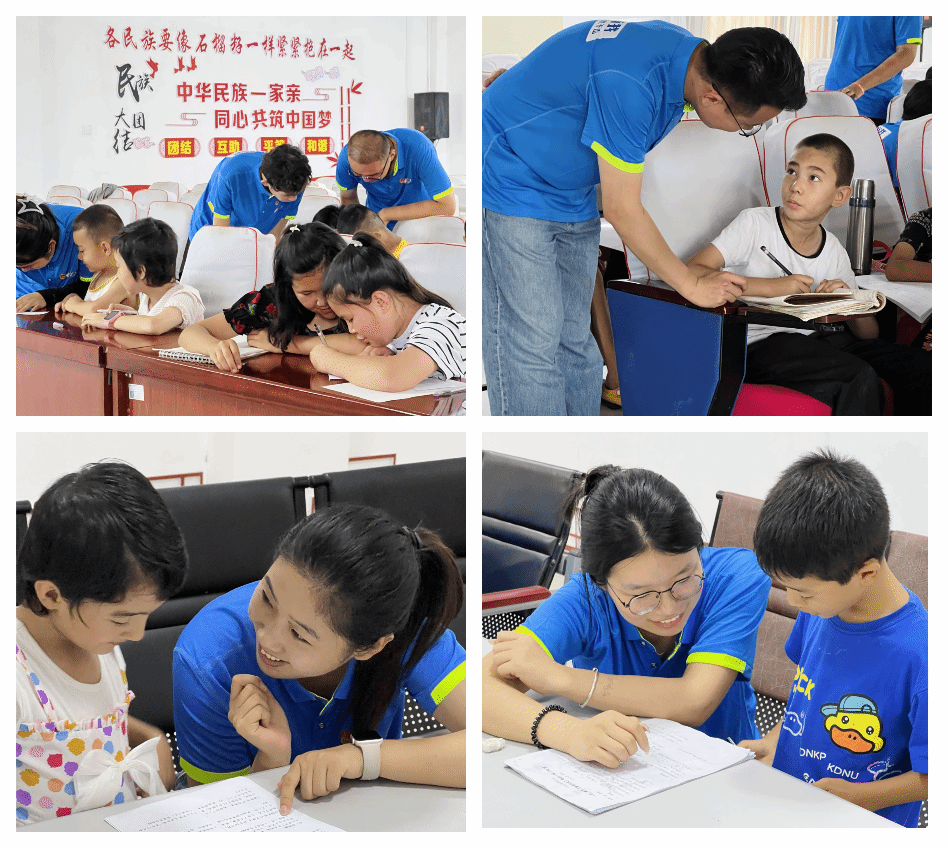 为切实解决社区孩子们对课本内容不理解,课后作业难辅导问题,服务队开展“辅导作业暖童心”活动,在每日支教内容结束后,专门为学生们辅导作业,进行答疑解惑。无论是数学中的计算难题,还是语文中字词的读写,或者是英语中的疑惑,志愿者们都凭借着扎实的知识储备和先进的教学方法,用生动有趣的方式进行讲解,让原本枯燥的知识变得充满趣味。在辅导过程中,孩子们的眼神中充满了对知识的渴望和对大学生们的敬佩以及对大学的向往。志愿者们也被孩子们的纯真、可爱、善良和好学所感动。
