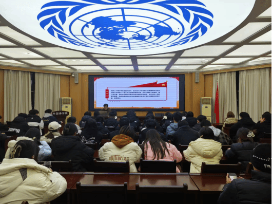 12月13日,“青春学堂”第九期走进外国语学院,由外国语学院团委副书记丁经伟老师为青年学生授课。来自校学生组织代表、二级学院主要学生干部、班级团支书代表共50余名青年学生参加学习。
