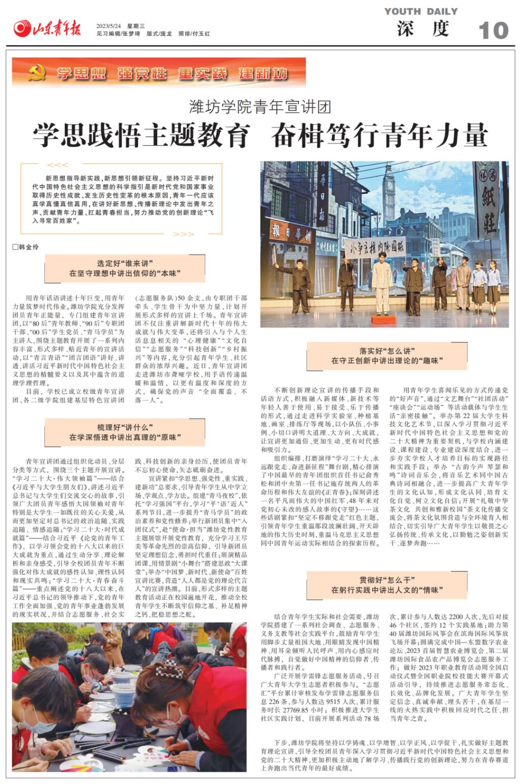 近期,山东青年报以《学习践悟主题教育 奋楫笃行青年力量》为题,深度报道了必赢集团bwin共青团围绕“青年宣讲”展开的系列活动。