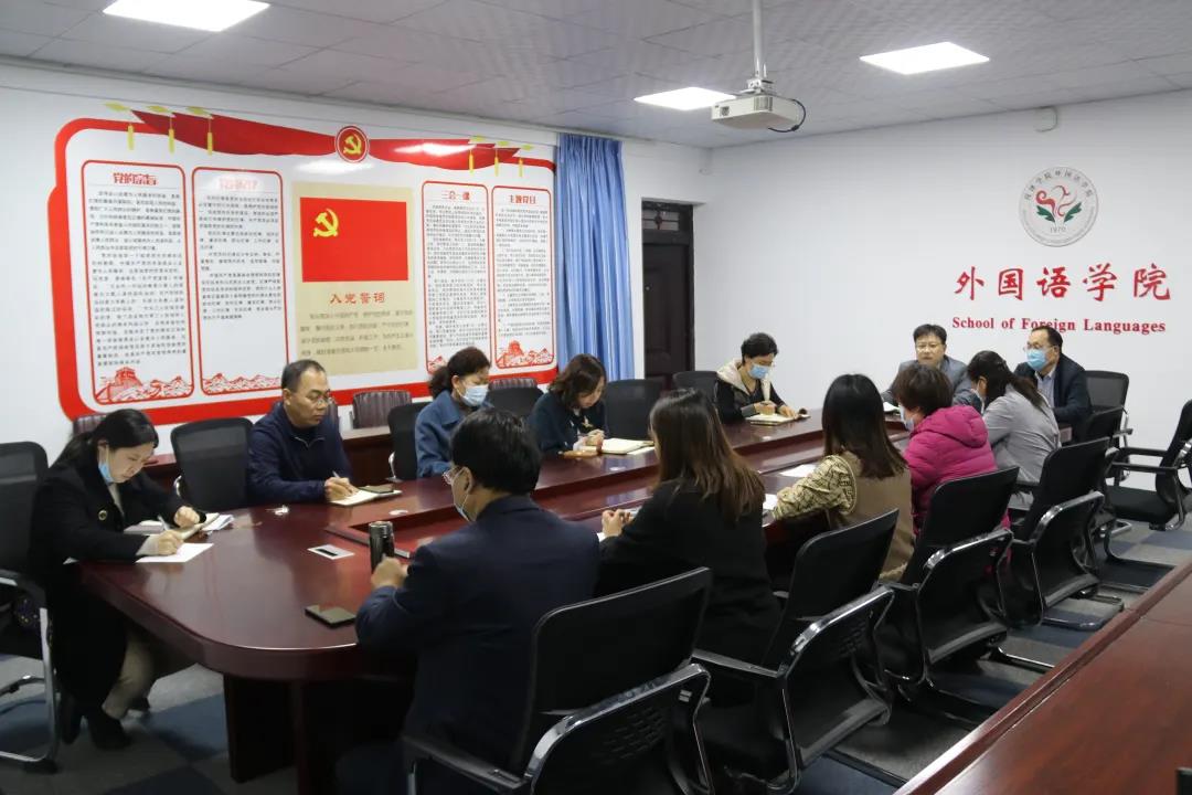 11月1日下午,外国语学院在7号教学楼212多功能室召开疫情防控工作专题会议,传达贯彻落实全省新冠肺炎疫情防控工作视频会议精神和学校疫情防控工作会议精神,安排部署外国语学院下一阶段疫情防控工作。外国语学院领导班子及全体行政人员参加会议。