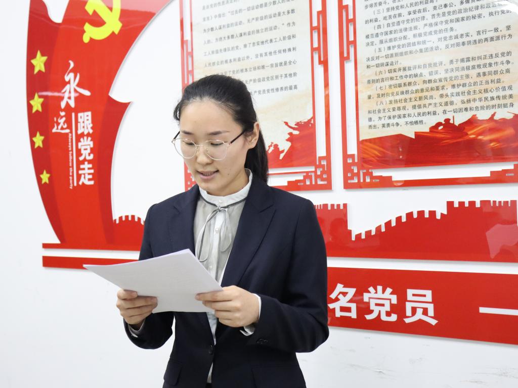 会议伊始,20名发展对象在支部全体党员的注视下,逐一郑重宣读入党志愿书,分别从自身对党的认识、入党动机、个人履历、家庭成员和主要社会关系、现实表现,以及需向党组织说明的其他问题等方面展开汇报,表达了对党组织的热爱和入党的决心。