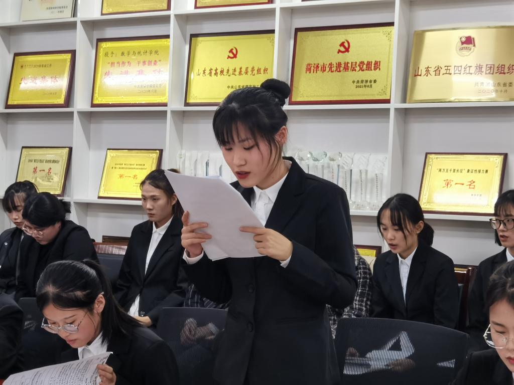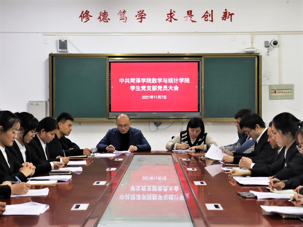 2021年11月7日下午,数学与统计学院学生党支部在6号楼206会议室召开接收预备党员大会。大会主要议题是讨论接收徐焕程等20名同志为预备党员问题。党支部书记王庆林、副书记吕锦茹,辅导员李新坤、于涛及学生党员参加会议。会议由王庆林主持。