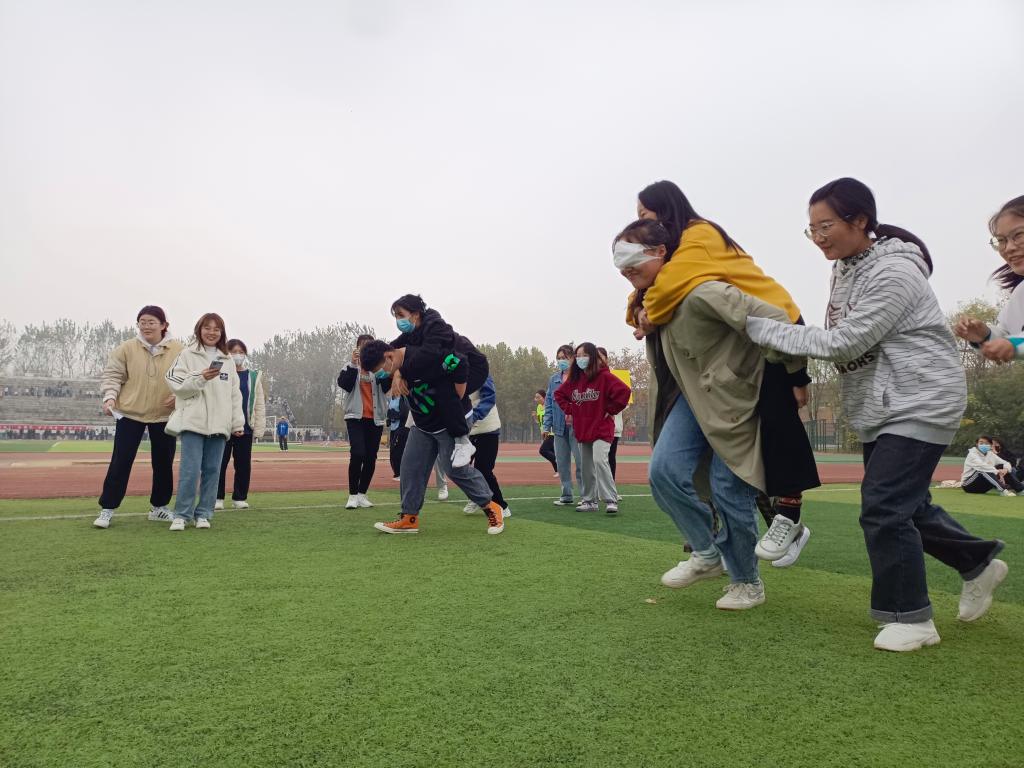本次活动由坐地起身、飞毽连心和扎气球等五个关卡组成,活动负责人按照参赛人员的意愿将其分为4~5人的若干小组。各小组由抽签决定比赛的先后上场顺序,通过五个关卡用时最少的队伍取得最终获胜。比赛过程中,同学们积极参与,配合默契,遵守现场秩序,加油声与欢笑声不断地洋溢在活动现场。通过近两个小时的比拼,本次活动在欢笑声中结束。