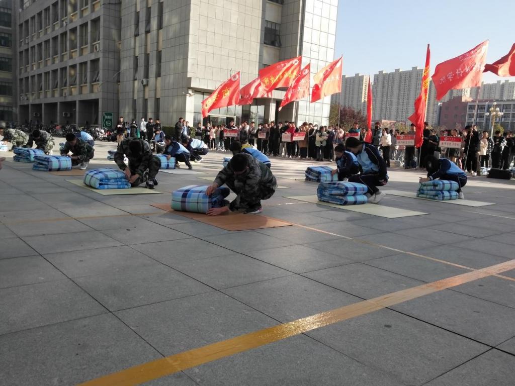 首先,由退伍军人进行内务整理展示。随后,裁判宣布比赛正式开始。参赛学生立马进入状态,有条不紊的叠起被子。三分钟后,每个学生的被子都叠的平平整整。参赛学生立刻起立,等待评委打分。接下来,参赛学生需在九十秒内将衣物整理完成放到被子旁边,并由评委再次进行打分。最终汇总两项比赛的得分,我院取得第八名的成绩。