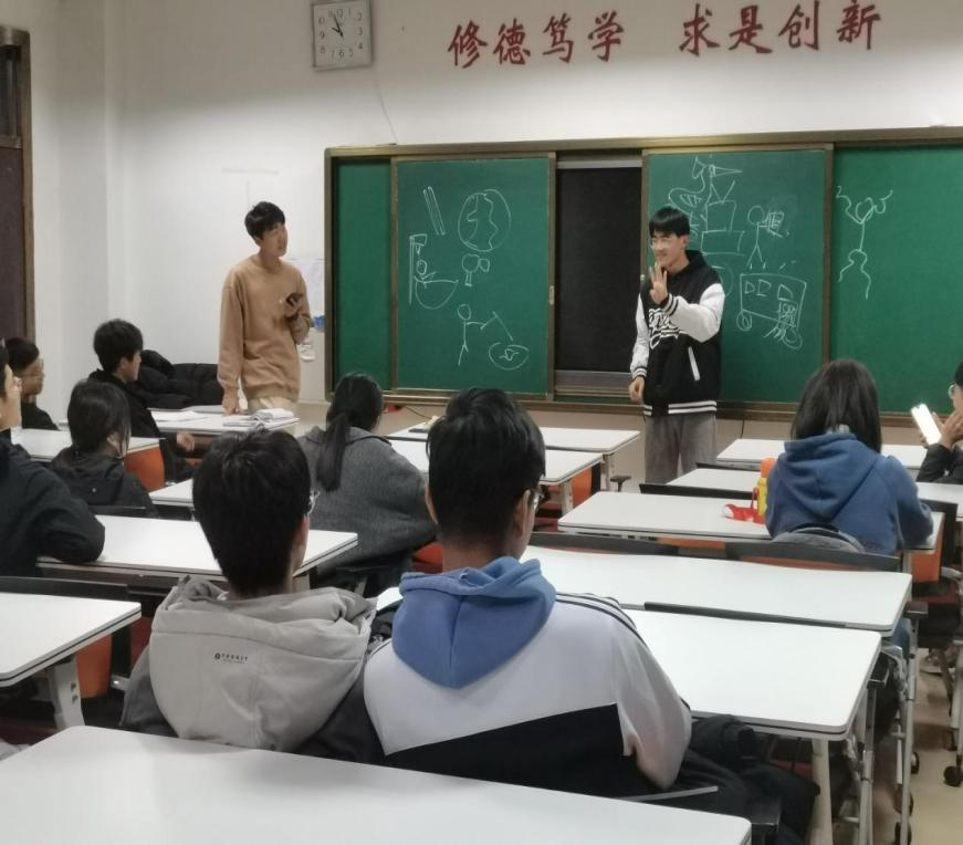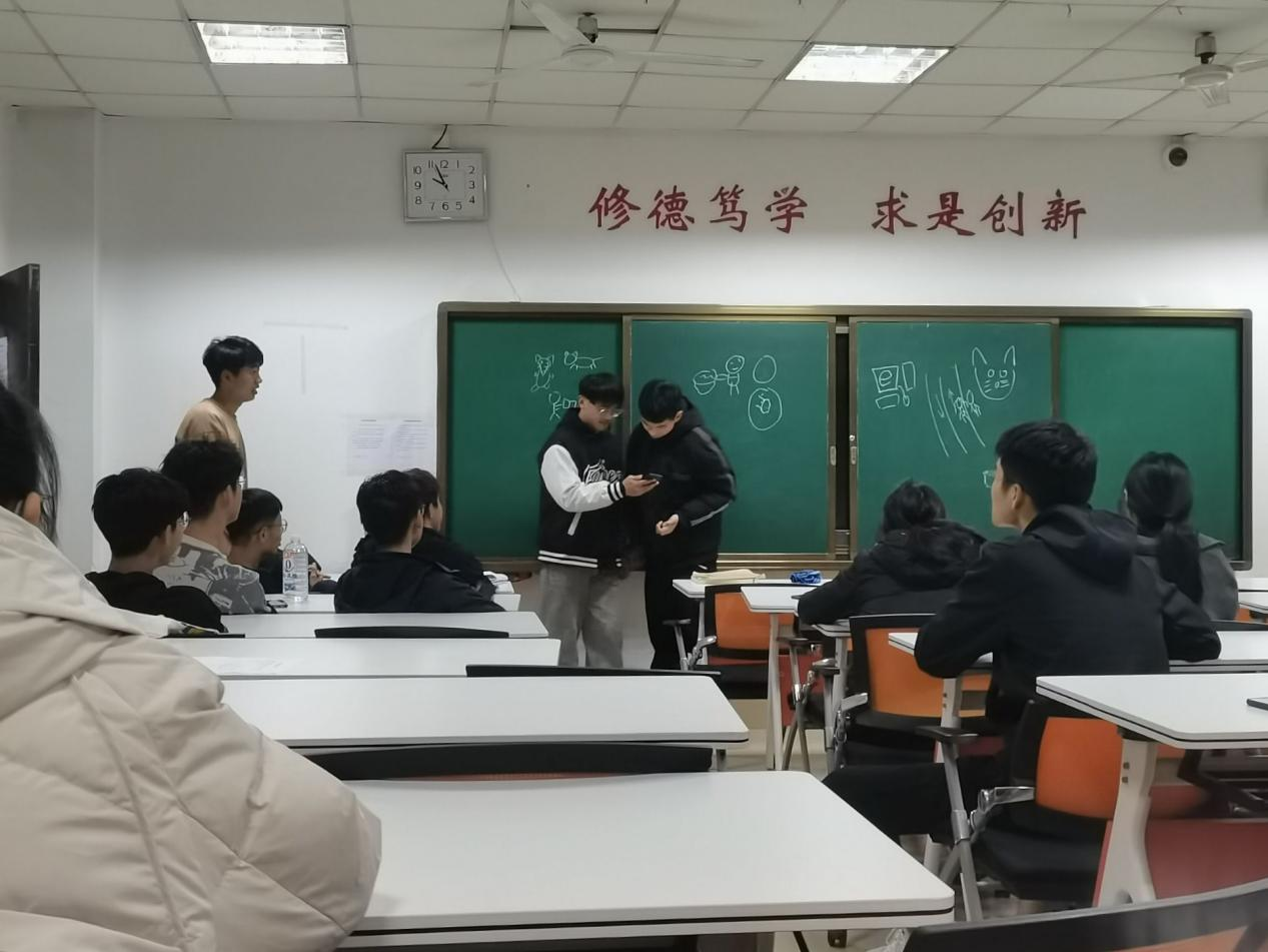 爱动健行团成员准时到达教室按序就座,相关负责人组织各成员开展“你画我猜”游戏。首先,主持人介绍游戏规则,成员们磨拳擦掌,蓄势待发,台下观众翘首以待。随后,本场游戏迎来了第一组玩家。游戏由一位成员按照答案进行绘画,另一位成员则需根据画手所画内容猜出答案。游戏中,画手奇怪的画风令社团成员笑声不断,将现场气氛推向高潮。在成员们的配合和引导下,每组游戏顺利进行,健行团活动圆满收场。
