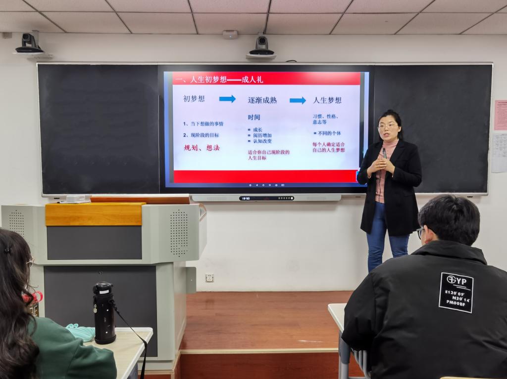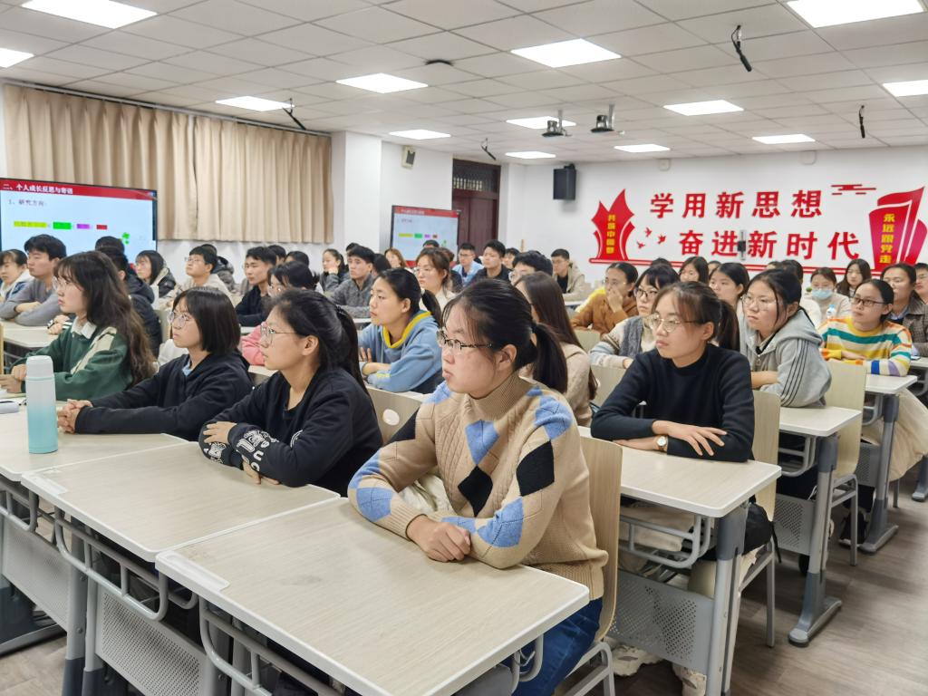 随后,她以矩阵性质、线性方程组的求解、近世代数的实际应用等内容为例,引导学生要善于思考、学为己用,强调价值重塑、知识吸收、能力培养三者应融为一体、不可分割。她结合“显性”知识和“隐性”知识的概念,鼓励学生强化提出、分析、解决问题的能力,运用批判思维、质疑精神,实现知识的升华,能力的提升。