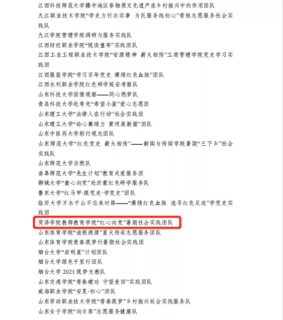 为深入学习宣传贯彻习近平总书记关于青年工作的重要思想,特别是习近平总书记“七一”重要讲话精神,进而以实际行动庆祝中国共产党成立100周年,团中央青年发展部、中国青年报社联合开展了2021年全国大中专学生志愿者暑期“三下乡”社会实践“镜头中的三下乡”活动。教师教育学院“红心向党”暑期社会实践团队在指导老师党委副书记渠东玲,学工办主任(团委书记)潘洪珍的带领下荣获“优秀视频团队”。