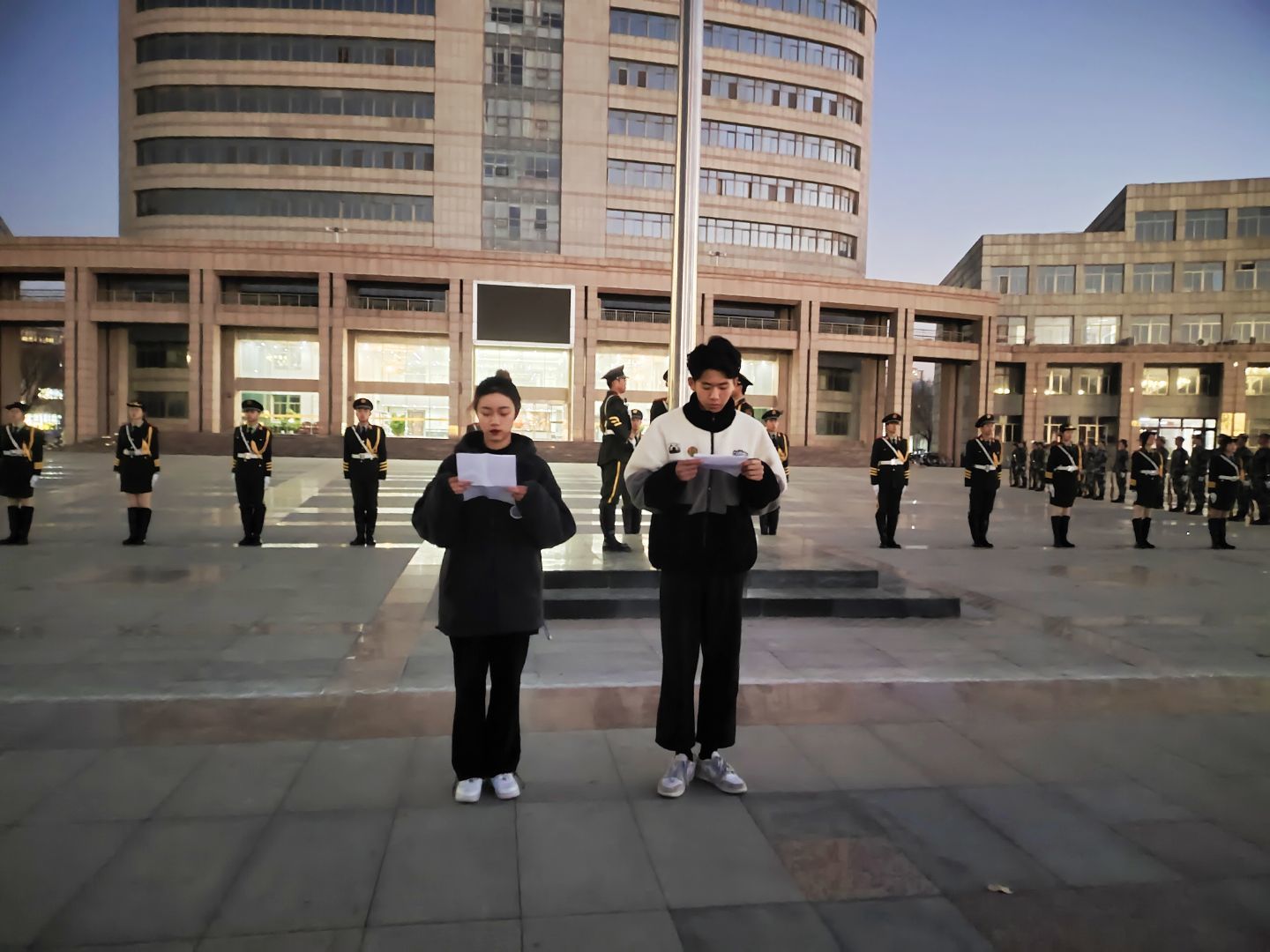 为了加强学生的爱国主义教育、提升爱国情怀,增强学生的集体荣誉感和社会责任感。12月20日,商学院2021级全体学生于综合办公楼前参加升旗仪式。