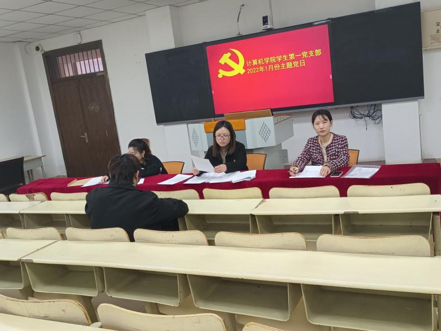 为进一步增强我院学生爱党奋斗精神,弘扬党的优良传统。1月6日,计算机学院学生第一党支部于9号教学楼312室开展主题党日活动。学生第一党支部全体成员参加此次活动,活动由许荣花同志主持。