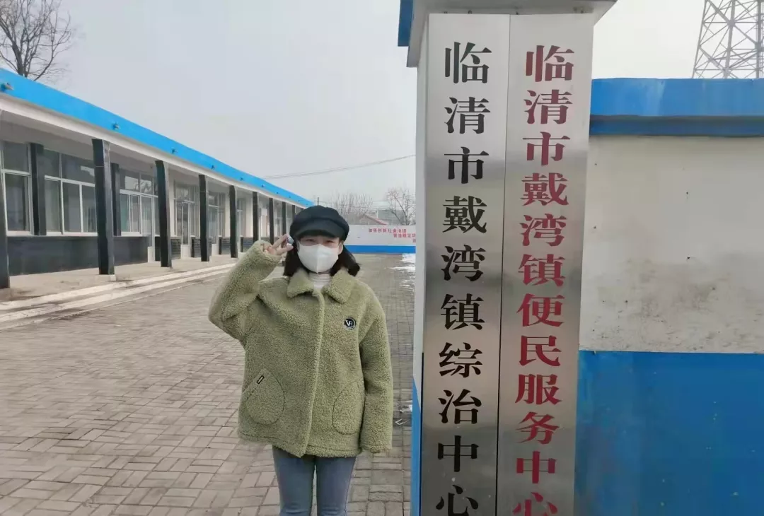 美术与设计学院19级书法学专业卢雪莲在聊城市临清市戴湾镇政府便民服务中心担任服务大厅志愿服务者,为办事群众提供咨询、指引,与群众同向同行。