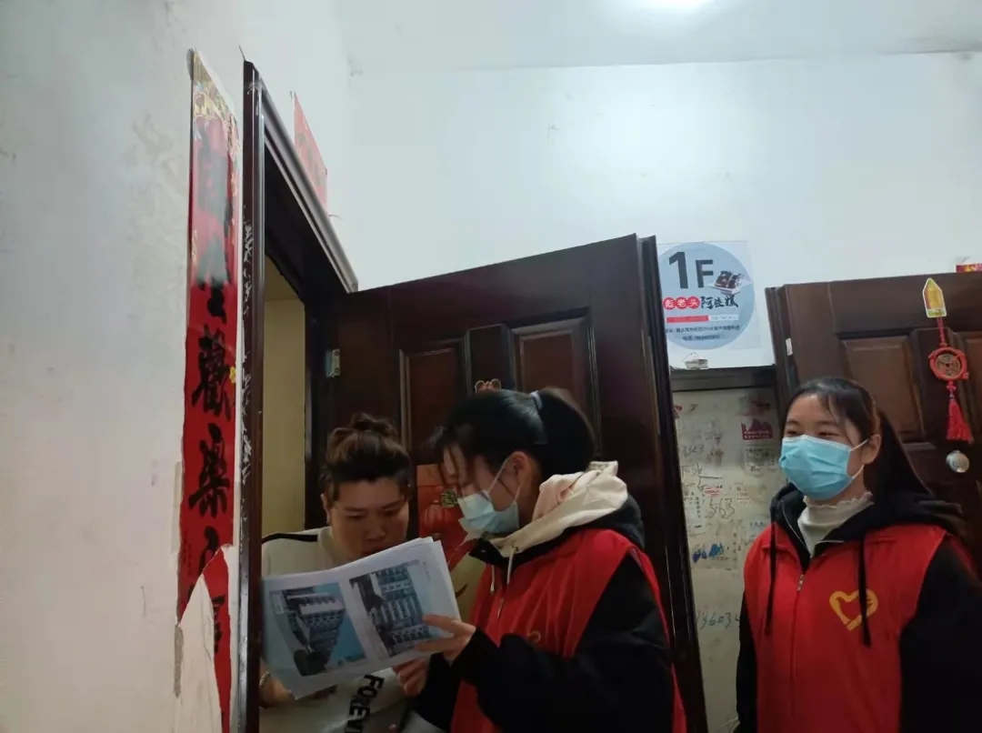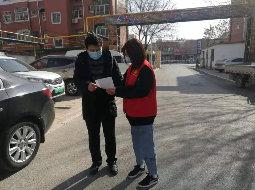 在志愿服务期间美术与设计学院21级动画专业谢提提在东营市东营区燕山路燕山小区担任疫情防控志愿者,向群众宣传新冠肺炎知识。