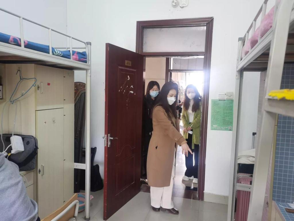 4月4日,音乐与舞蹈学院党委书记冯姝娅、院长岳雷、党委副书记王晓明、副院长李梦华带队办公室、教科办行政人员及全体辅导员对本院所有学生宿舍进行疫情防控和在线教学开展、学生上课情况进行走访调研。