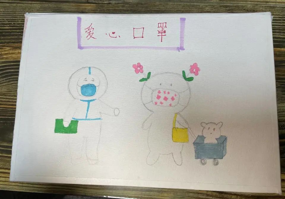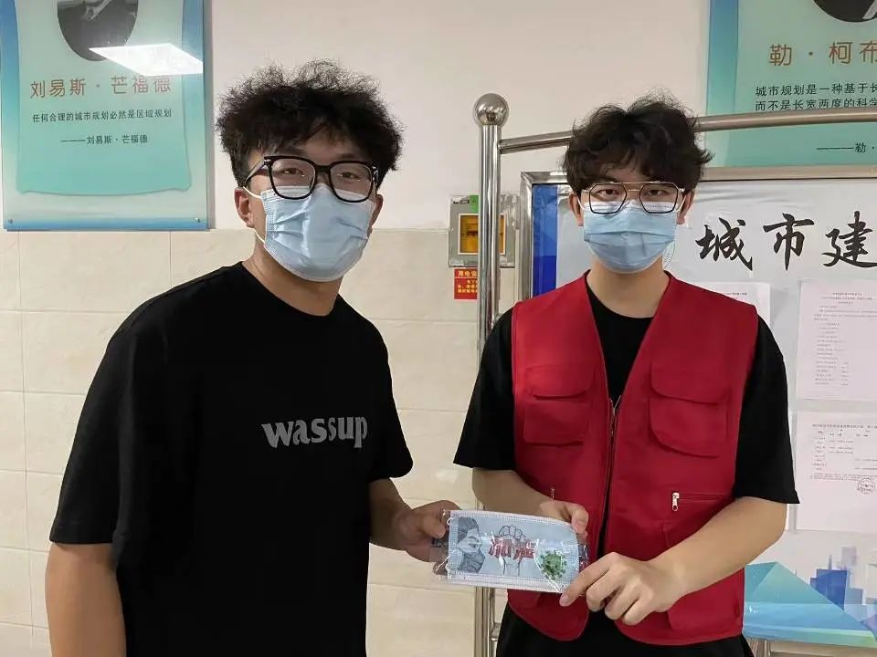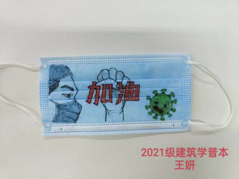 活动伊始,城市建设学院学生会权益部向参加活动的同学分发口罩,利用彩笔、鲜花、贴纸等不同形式对爱心口罩进行创作。2021级建筑学普本王妍制作的爱心口罩,左边是身穿防护服的医护工作者,右边是放大的新冠肺炎病毒,中间则是紧握成拳的一只手,上面写着红色的加油二字,表达对战胜疫情的坚定决心,十分贴合活动主题。爱心口罩制作完成后,由城市建设学院学生会权益部统一收回,并分发赠送给在学校坚守岗位的老师和志愿者们,传递对于战胜疫情的决心和信心。城市建设学院陈伟、汤洪震、李伟等老师以及部分志愿者均收到了本次活动同学制作的爱心口罩。