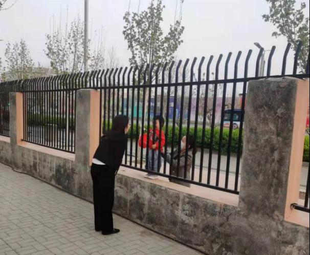 毛嘉宁同志作为十位住校教职工党员中的一员,孩子刚满两岁,在接到疫情防控通知时,只有一句“我服从安排”,舍小家、顾大家,冲在了抗击疫情的第一线。校园实施封闭化管理已经一周了,2岁的女儿想念妈妈,但为了严格遵守校园疫情防控规定,孩子只能隔着栅栏向妈妈表达爱意。隔着栅栏,一米的距离,那么近,又那么远。