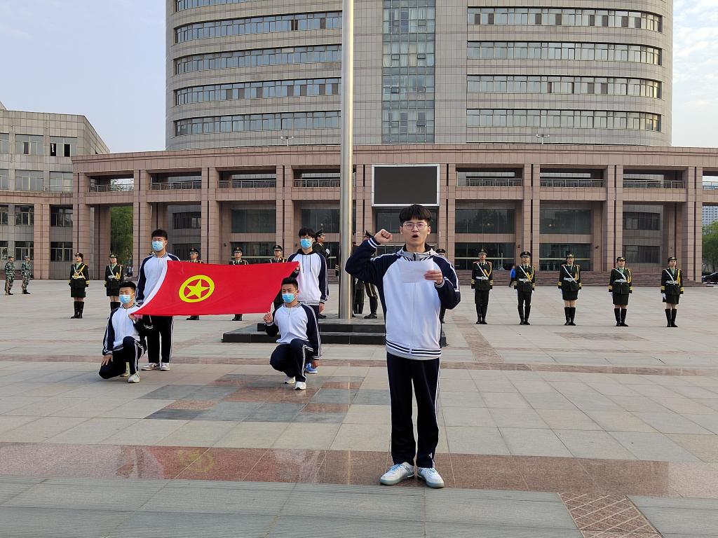 升旗仪式于6:40准时开始,伴着嘹亮的口令声,国旗护卫队的旗手们迎着朝阳,以饱满的热情,护送着鲜艳的五星红旗。他们目光如炬、队列整齐、步履铿锵,在嘹亮的国歌声中,鲜艳的五星红旗冉冉升起。随后,学生代表刘沛霖在国旗下进行精彩激昂的演讲,他表示,作为新时代的新青年,要有爱国情怀、奉献精神、担当精神。最后,在宣誓人郭荣智的带领下,全体人员进行国旗下宣誓,同学们紧握右拳,铮铮誓言高昂雄浑,回荡在广场之上。