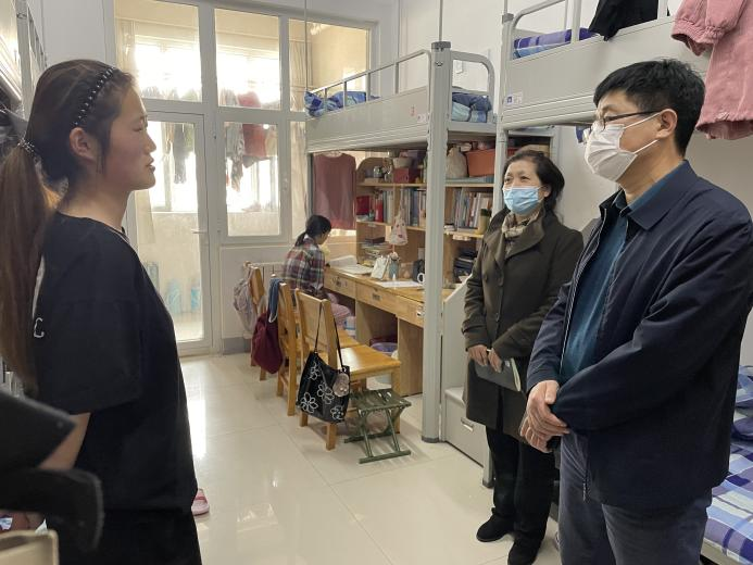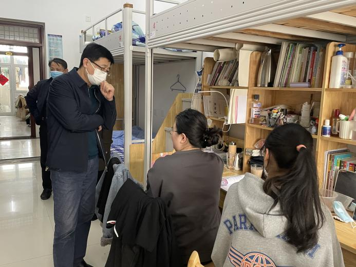 为全面了解疫情防控下学生宿舍内务和线上学习生活状况,保障学生身心健康,做好学生思想工作,教师教育学院领导老师分为五个小组,每天对宿舍进行走访。