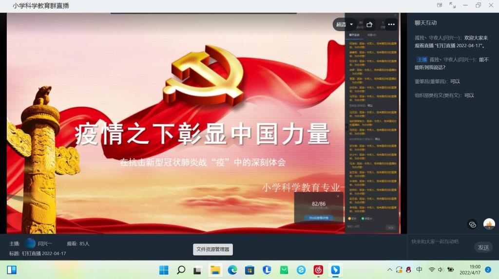 4月17日晚,教师教育学院在线上举办“抗击世纪疫情,彰显‘中国之治’”周日论坛。2021级全体学生参加本次活动。