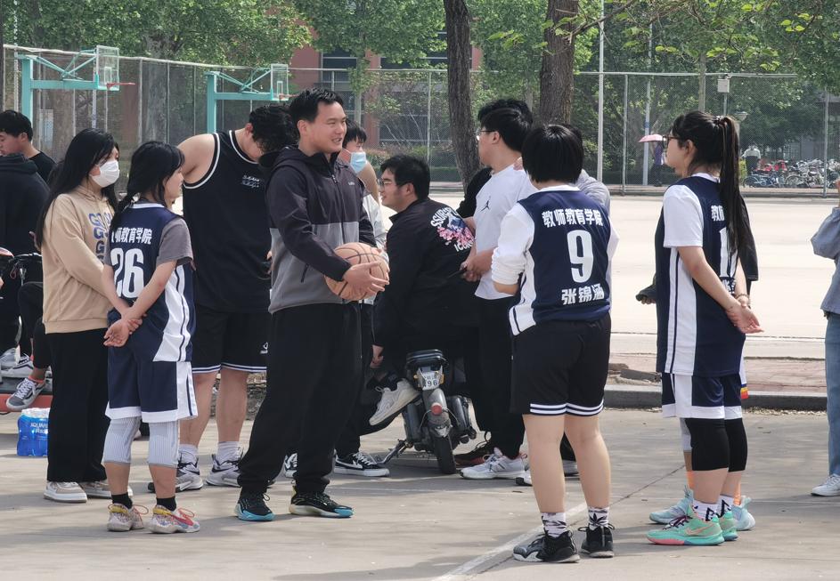 4月17日上午,教师教育学院在篮球场举办“篮球之征,疫往无前”3对3篮球赛,辅导员刘燊老师到场指导并担任裁判,教师教育学院2020级、2021级同学积极参加本次活动。