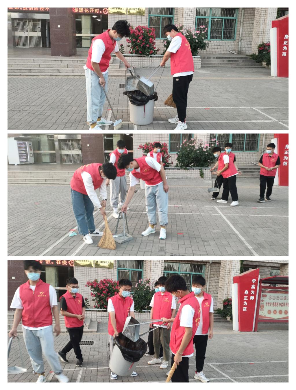 活动伊始,同学们准时到达科技楼前,准备扫帚、簸箕、垃圾桶等卫生工具,提前做好准备工作。随后,负责人开始分工并督促同学们开始打扫,有的扫地,有的倒垃圾,同学们工作做的井然有序,活动如火如荼的进行,虽然同学们都已经汗流浃背但他们脸上仍洋溢着幸福的笑容,最后,通过同学们共同的努力,科技楼前的地面变得焕然一新。