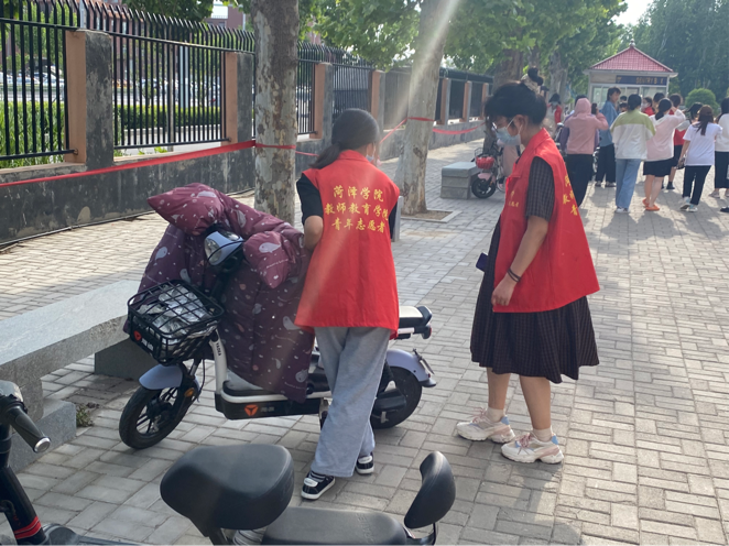 本次活动以劳动实践为主,组织学生进行志愿服务。志愿者对乱停乱放的非机动车进行整齐排列,提醒同学们在骑行前佩戴安全帽,对不文明停放车辆的同学进行劝导,并耐心向来往同学讲解交通规则和秩序,呼吁同学们积极参加交通安全知识宣传的实践活动。在活动中,志愿者们十分耐心、热情、积极,体现了他们不怕苦不怕累的志愿精神,得到了老师和同学们的赞扬。
