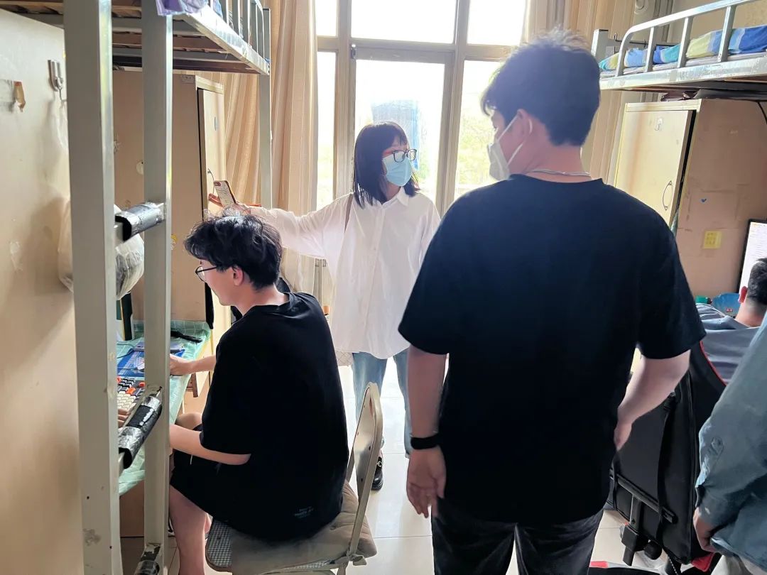 此次检查由陈伟,李伟,汤洪震分别带领学生会成员分成三组进行检查。在排查过程中,陈伟对宿舍空气较差,插排电线随意搭放,使用大功率电器等安全问题进行指正。同时,李伟对宿舍环境和卫生的不足提出建议,并且强调宿舍的安全直接关系到同学们的生命安全,需要同学们平日里时刻保持宿舍内的环境卫生,勤通风勤消毒,如有身体不适一定要及时反应,积极主动配合学院的疫情防控工作。在将近一个小时的检查过程中,学生会发现同学们出现了人走未断电、个人衣务随意摆放等问题。因此由学生会成员进行拍照,并记录宿舍号,以便下次着重进行检查。