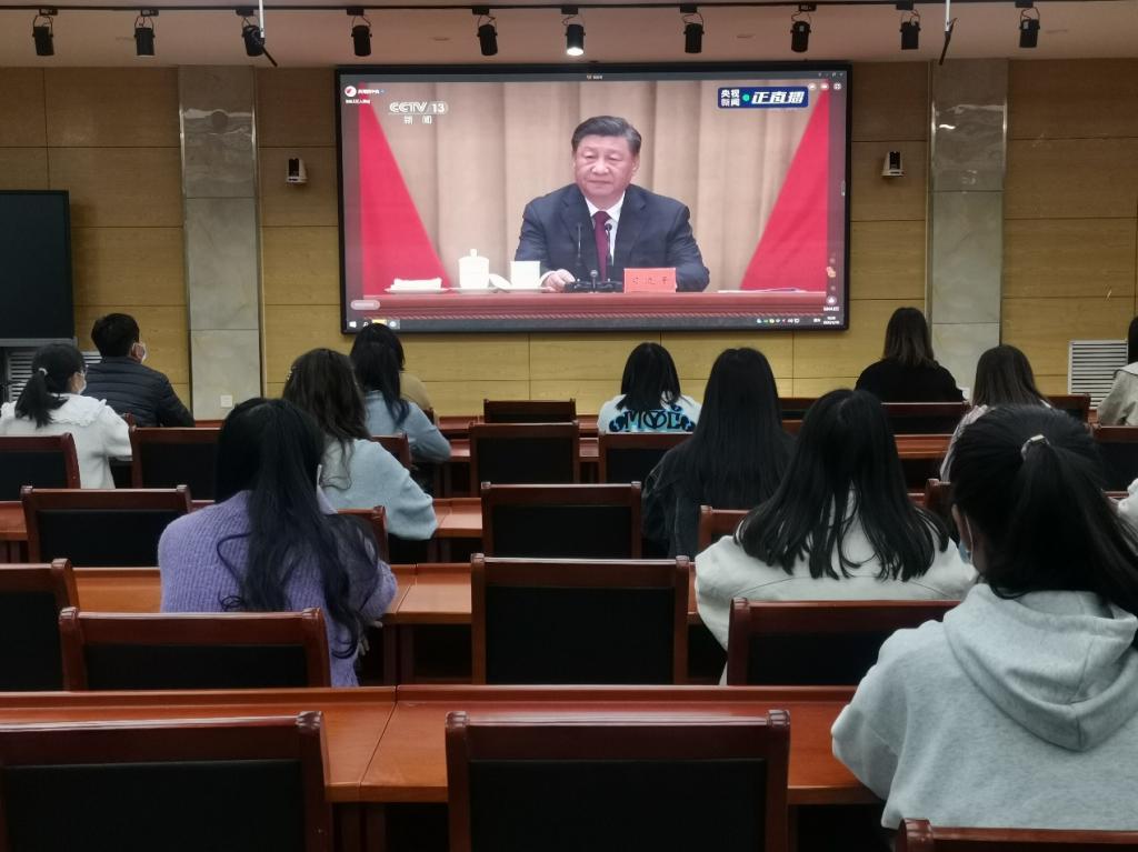5月10日上午,庆祝中国共产主义青年团成立100周年大会在北京人民大会堂隆重召开。教师教育学院辅导员吴培启、狄明艳、刘燊、李怡、岳金笛及共青团员代表在教师教育学院图书馆108多功能室进行集中观看。