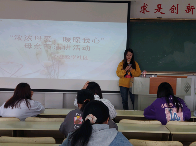 5月14日晚,教师教育学院心蕊教学社团在8号教学楼414室举办“浓浓母爱,暖暖我心”母亲节演讲活动。教师教育学院学生积极参加本次活动。