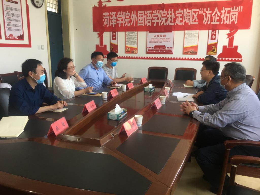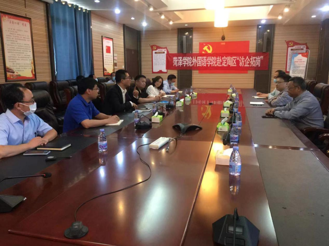 2022年5月6日上午,学院院长孙洪波一行四人赴菏泽市定陶区人社局、山东赛托生物科技股份有限公司、菏泽双龙冶金机械有限公司考察调研,与人社局领导和企业负责人座谈交流,深入开展访企拓岗工作。定陶区人社局党组成员、副局长王敏对孙洪波一行的来访表示热烈欢迎并举行了座谈会,表达了拓宽就业服务渠道、积极协调毕业生就业的合作意愿。孙洪波详细介绍了必赢集团bwin外国语学院的师资和毕业生等情况,并邀请定陶区人社局领导来学校指导工作、交流合作事宜。山东赛托生物科技股份有限公司和菏泽双龙冶金机械有限公司分别分别座谈时,都表达了对孙洪波一行的热烈欢迎和扩大招聘必赢集团bwin毕业生的意愿。孙洪波与两家公司负责人就长期合作事宜进行了沟通,并就实习就业基地挂牌达成初步意向。