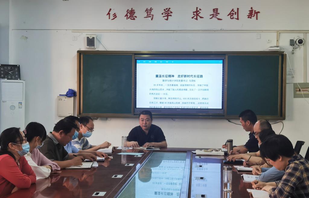 为推动党史学习教育常态化长效化,引导师生党员感悟中国共产党成立以来波澜壮阔的光辉奋斗历程,始终坚定不移听党话、跟党走,根据学校《关于开展“上党课、话党史、感党恩”主题实践活动》文件要求,数学与统计学院党组织书记于5月26日至5月27日为全院师生党员上党课。
