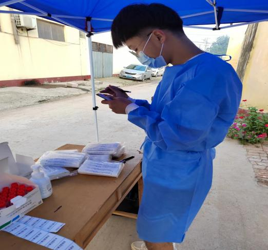 常阔,化学化工学院2021级化学师范班学子。他怀揣着积极乐观的情绪、健康向上的心态,在疫情防控期间积极投入到山东省菏泽市开发区岳楼村疫情防控工作中。他不畏艰难,在烈日炎炎的夏日无限的发挥自己的人生价值。在当地疫情防控工作中,他的主要工作是负责辅助核酸检测以及通知居民按政府要求按时进行核酸检测。随着疫情的严重,核酸任务逐渐加重,他的志愿行为不仅缓解了当地做核酸时人员紧张的现状,还为做核酸营造了一个更为有序的环境。他每次都认真仔细地完成各项工作,在社区的指导下不断进步,造福社区人民的同时提升了自身能力,使自我价值得以体现。他牺牲了自己在空调房中安逸的假期,换来了社区里长辈赞许的目光,他在帮助别人的同时自身也会得到很大的满足,尤其是看到别人因他的帮助而绽放的盏盏笑颜,更是觉得所有付出的汗水努力都是值得的。