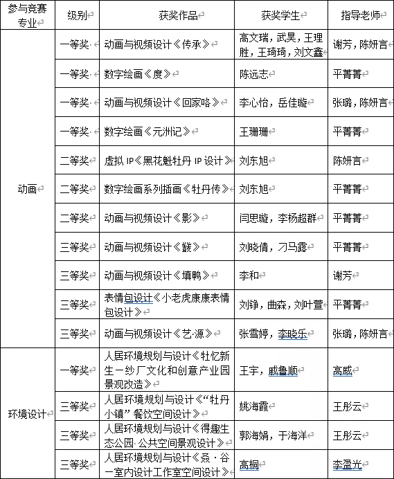 近日,由工业和信息化部人才交流中心主办的第十届未来设计师•全国高校数字艺术设计大赛(NCDA)省级赛获奖名单揭晓。经过600余位专家评审,在激烈角逐中我院荣获教师组三等奖1项,动画专业和环境设计专业学生作品获得一等奖5项、二等奖3项、三等奖7项,总计16项。