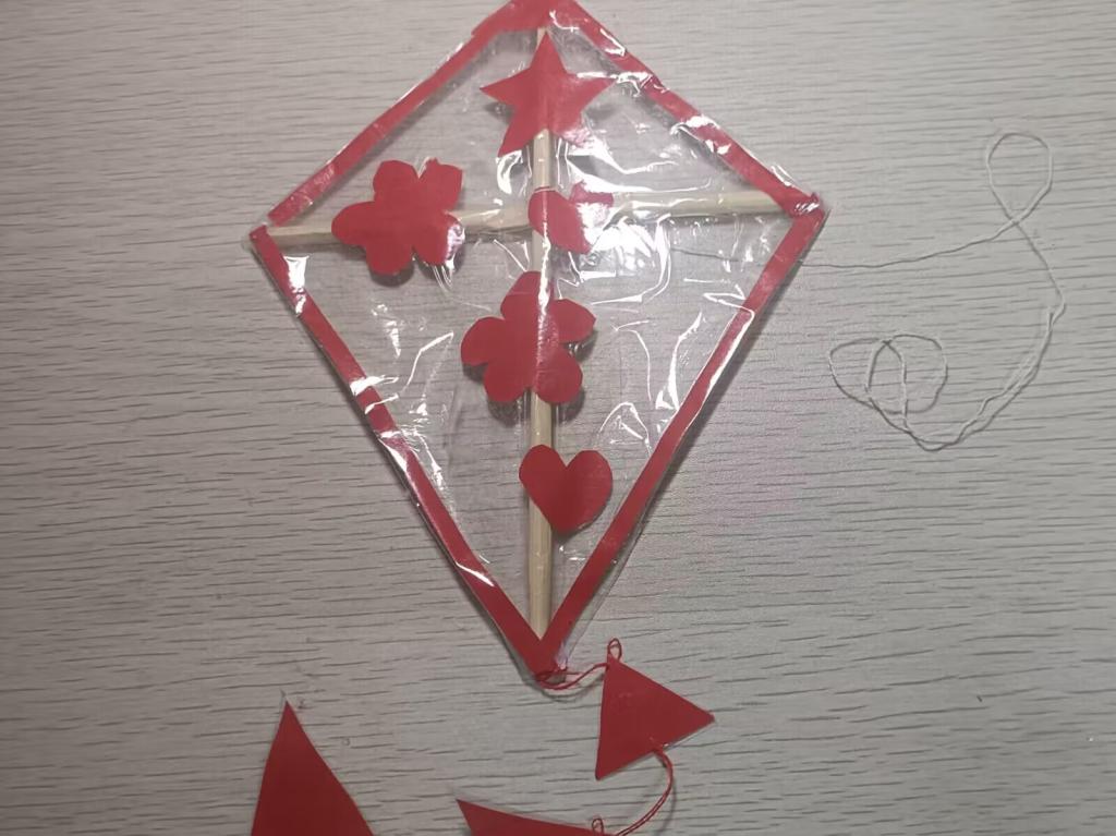 其中,2021级小学科学教育专业一班李悦恒将油墨与传统工艺相结合,借荷花和锦鲤传达出平安吉祥、年年有余的美好祝愿;2021级小学科学教育一班李亚楠通过剪纸在风筝上呈现的绿叶与花朵承载着同学们对春天即将到来的无限期待。