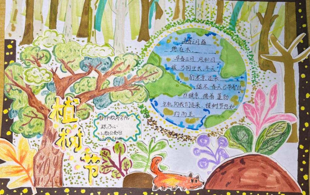 3月12日下午,教师教育学院以“植树春风里,且看山河绿”为主题的绘画活动在8号教学楼406室举办,教师教育学院学子踊跃报名,积极参与。