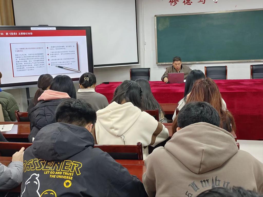 开班仪式结束后,学院党委副书记祝清森同志担任主讲人,开展培训第一讲党课——《中国共产党章程》。祝清森同志强调,党章是立党、治党、管党的总章程。只有认真学习和深入贯彻党章,才能确保我们党始终沿着党的基本理论、基本路线、基本纲领、基本经验指引的正确方向前进,始终成为中国特色社会主义事业的坚强领导核心,始终凝聚起全党的意志和力量,为实现党的理想和目标而共同奋斗。