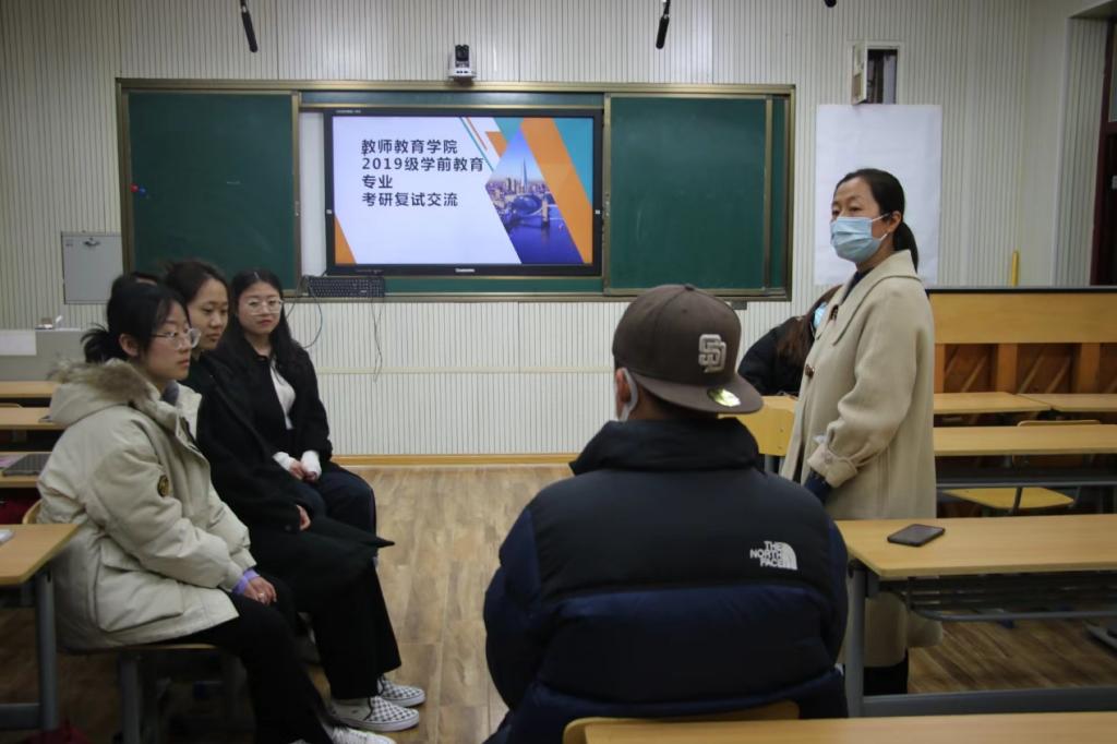 3月17日,教师教育学院在4号教学楼606室召开2019届学前教育专业毕业生考研复试交流会。教师教育学院专业指导教师王梅和考研过线同学参加本次会议。