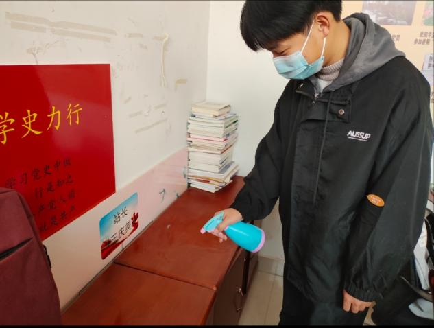 生活部成员负责将志愿者们进行分组,责任到楼。志愿者们严格按照卫生消杀要求进行规范操作,对宿舍进行全面消杀,尤其是对门把手、宿舍地面、阳台、卫生间等进行重点消杀,真正做到消杀无死角、无盲区。在消毒过程中,志愿者们互帮互助,配合默契,充分发扬了团结协作精神。活动最后,志愿者们提醒同学们要常通风、勤消毒,保持良好的安全卫生习惯,宿舍成员共同努力,塑造安全、温馨的宿舍环境。