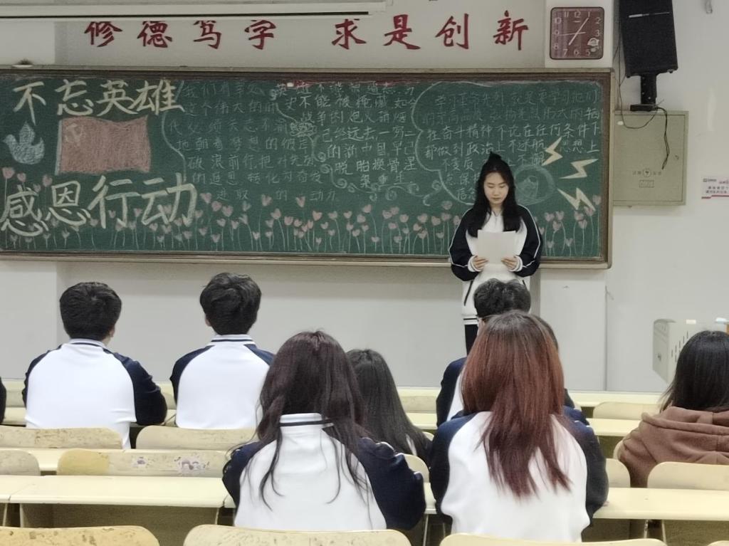 本次论坛以板报展示、PPT放映为主,学生演讲、交流讨论等为辅的形式展开。其中,2022级小学教育专业公费班王瑞洁和王易涵以“百年征程波澜壮阔,英雄浩气万古长存”为主题进行演讲,呼吁同学们生逢盛世,要继承发扬革命先辈的艰苦奋斗精神,不断开拓进取,锐意创新;2022级学前教育专业对口本科班南晓雨的演讲围绕“赓续红色血脉,续写先烈光荣”展开,以饱满的情感介绍了烈士们的英勇事迹,激励同学们牢记历史,砥砺奋进。