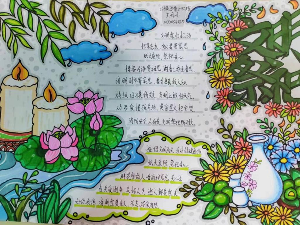 4月13日,教师教育学院在8号教学楼411室举办“消防安全人人有责,文明祭扫防明火”主题手抄报活动。教师教育学院学子积极参与本次活动。