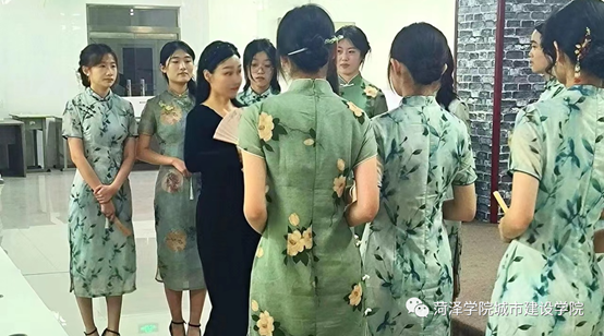 为了彰显东方女性的独特魅力,宣传中华优秀传统文化,并为即将到来的旗袍大赛做准备。5月12日,菏泽市旗袍协会李萍老师莅临现场指导旗袍工作,城市建设学院旗袍队成员参与此次活动。