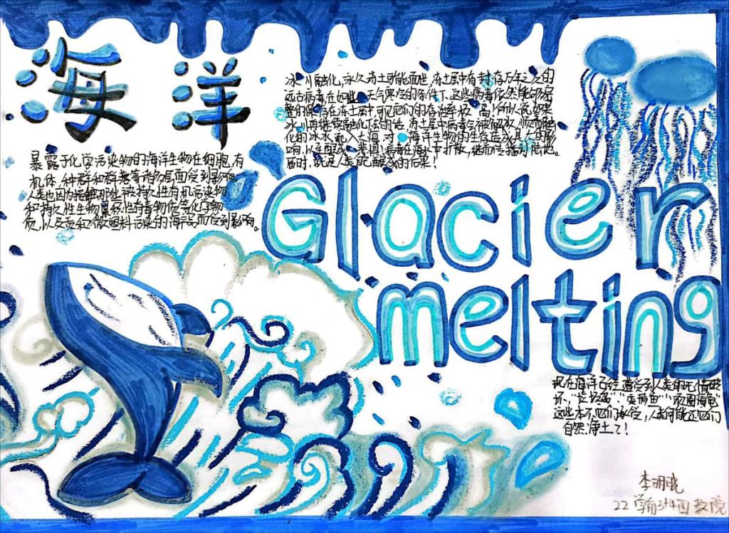 本次活动以手抄报绘制为主,结合创作解说的形式开展。参赛作品精彩纷呈,解说独具特色。其中,2021级学前教育专业3+4一班的张锦涵的作品以“保护海洋”为主题,用独特新颖的设计向同学们讲述了海洋污染的严重性;2022级学前教育专业3+4四班的李明晓以蓝色为主色调,阐述了海洋污染的危害,并告呼吁大家要保护海洋、热爱海洋。