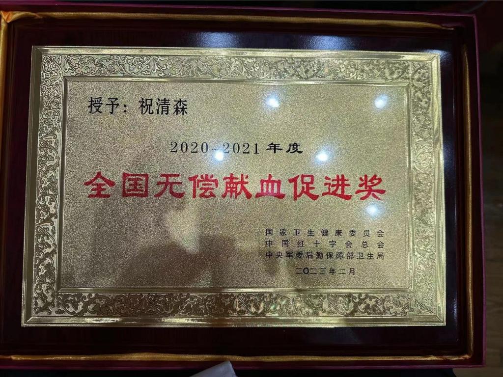 “全国无偿献血促进奖”是由国家卫生健康委员会、中国红十字会总会、中央军委后勤保障部卫生局联合评选,对在无偿献血工作中做出突出贡献的单位授予的最高奖项,旨在弘扬社会正能量,营造良好的无偿献血氛围,激励全社会更多人关心、支持、参与无偿献血,为推进无偿献血事业健康发展,推动社会文明进步和实施健康中国战略贡献力量。